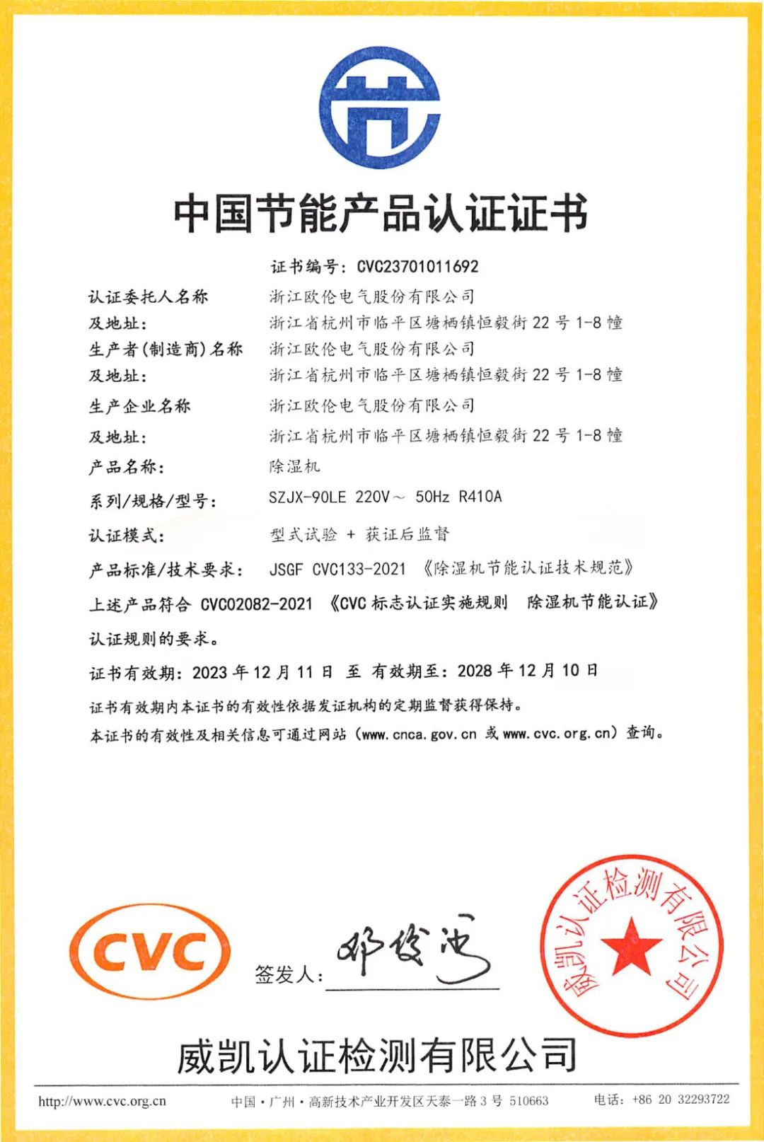 近日,松井第五代智能防霾新風除濕系統順利通過威凱檢測技術有限公司中國節能產品認證,憑實力斬獲中國節能產品認證證書。